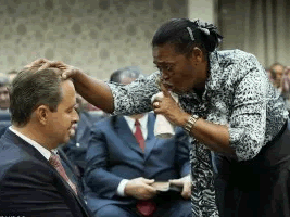 Foto de fiel impondo as mãos sobre o político corre as redes sociais.
